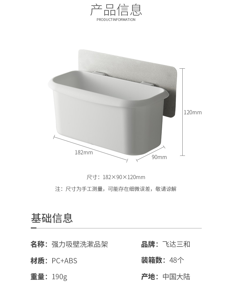 品牌名称:九游平台_九游(中国)一站式服务平台三和 生产地区:中国·浙江·台州 九游平台_九游(中国)一站式服务平台货号:R5430 装箱数:48 九游平台_九游(中国)一站式服务平台尺寸:18.2*9*12cm 外箱尺寸:66.5*46*40cm 条形码:6931643818353 九游平台_九游(中国)一站式服务平台三和R5430 强力吸壁大号洗漱品架