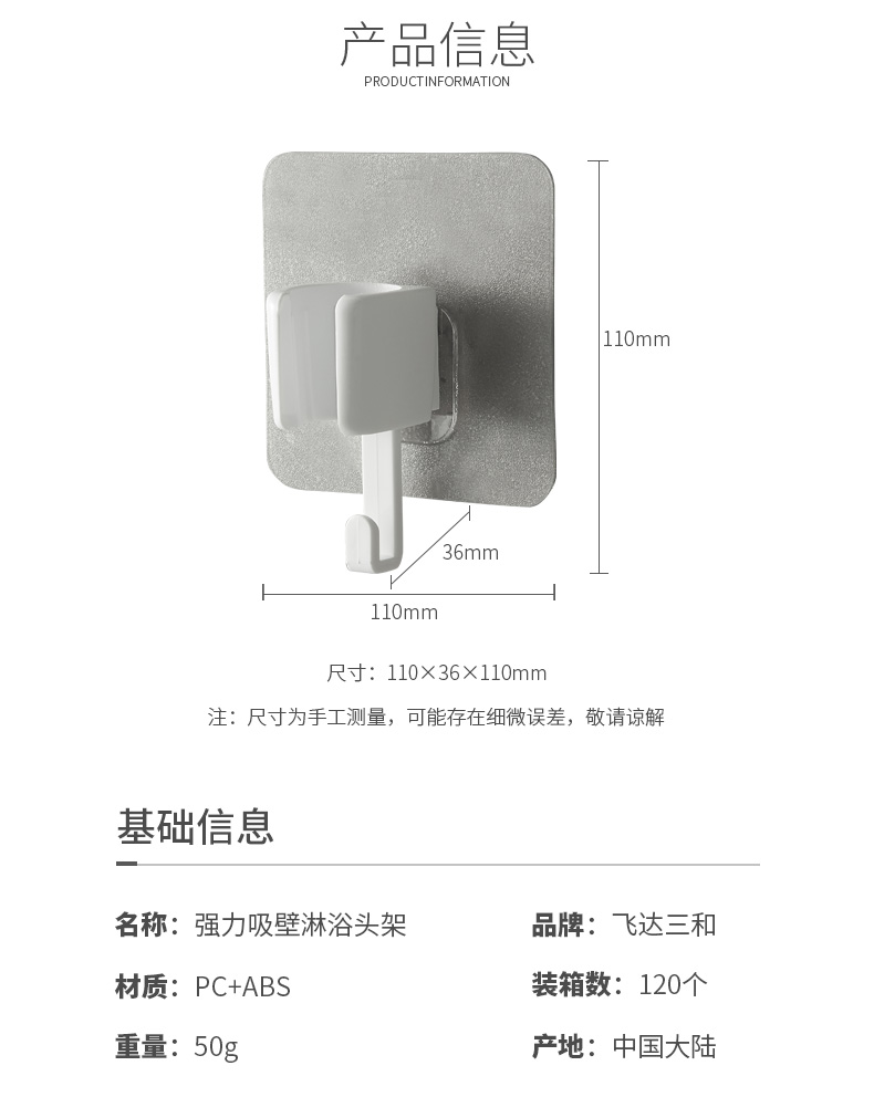 品牌名称:九游平台_九游(中国)一站式服务平台三和 生产地区:中国·浙江·台州 九游平台_九游(中国)一站式服务平台货号:R5420 装箱数:120 九游平台_九游(中国)一站式服务平台尺寸:11*3.6*11cm 外箱尺寸:39*28*45cm 条形码:6931643818346 九游平台_九游(中国)一站式服务平台三和R5420 强力吸壁淋浴头架