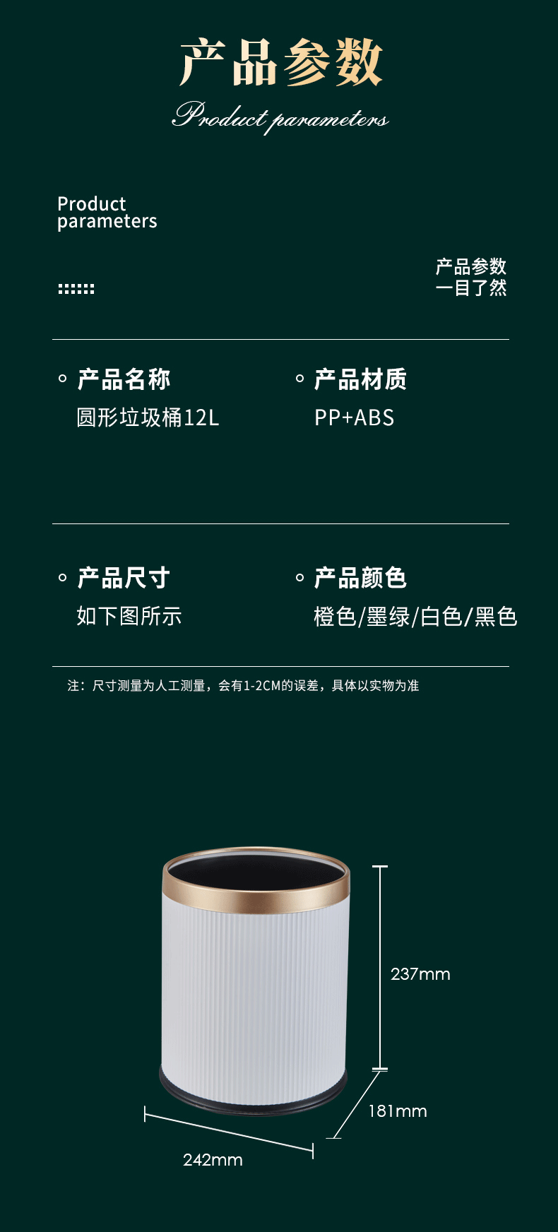 品牌名称:九游平台_九游(中国)一站式服务平台三和 生产地区:中国·浙江·台州 九游平台_九游(中国)一站式服务平台货号:TG3791 装箱数:12 九游平台_九游(中国)一站式服务平台尺寸:23.5x23.5x27cm 外箱尺寸:71x48x54.5cm 条形码:6931643825047 九游平台_九游(中国)一站式服务平台三和TG3791 圆形条纹垃圾桶 12L