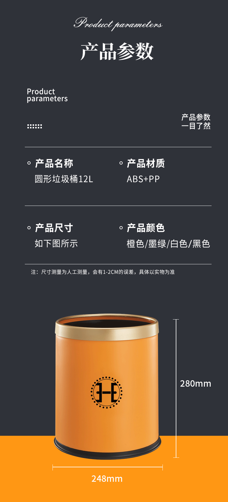 品牌名称:九游平台_九游(中国)一站式服务平台三和 生产地区:中国·浙江·台州 九游平台_九游(中国)一站式服务平台货号:TG3790 装箱数:12 九游平台_九游(中国)一站式服务平台尺寸:23.5x23.5x27cm 外箱尺寸:71x48x54.5cm 条形码:6931643824392 九游平台_九游(中国)一站式服务平台三和TG3790 圆形垃圾桶 12L
