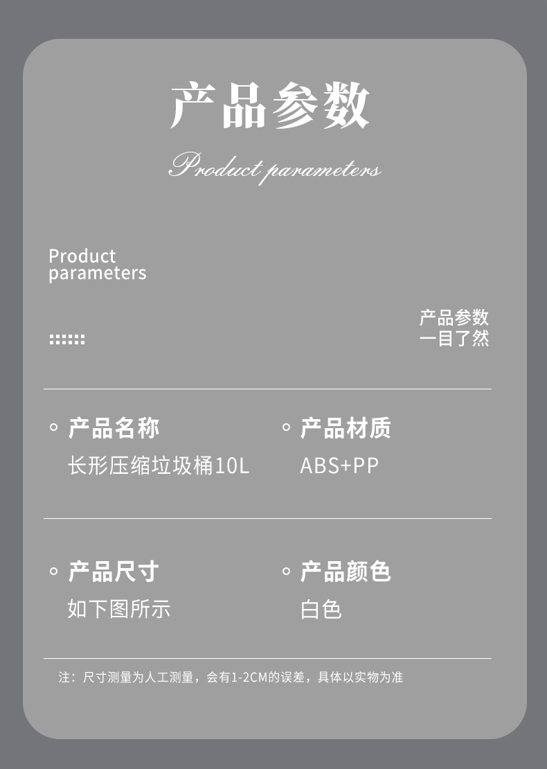 品牌名称:九游平台_九游(中国)一站式服务平台三和 生产地区:中国·浙江·台州 九游平台_九游(中国)一站式服务平台货号:TG3810 装箱数: 九游平台_九游(中国)一站式服务平台尺寸: 外箱尺寸: 条形码: 九游平台_九游(中国)一站式服务平台三和TG3810 长形压缩垃圾桶 10L
